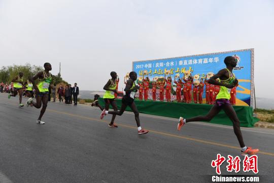 9月23日,由中国田径协会支持注册的2017中国(庆阳·合水)秦直道体育嘉年华系列活动乡村马拉松赛,在甘肃庆阳市合水县境内古老的秦直古道鸣枪开跑,来自中外的体育选手在这里展开角逐。在合水县境内共有80多公里的秦直古道路基遗迹,路面宽度均为4.5米,被史学家誉为中国“第一条高速路”,是和秦长城齐名的当时两大国防工程之一。
