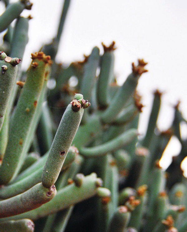 我们钻进此行包下的一辆吉普车。“欢迎来到索科特拉岛,”年轻导游巴萨姆顽皮地冲我们笑着说,“等着你们的是一个又一个从没见过的东西!”的确有样东西我们迫不及待地想一睹真容,那就是该岛最负盛名的特有物种——龙血树(学名 Dracaena cinnabari)。这种植物在漫长岁月里几乎未留下进化的痕迹,由此赢得了“活化石” 之称。神秘的“龙血”二字源自其黏稠的深红色树脂,在古代是一种颇受商队青睐的珍品,也孕育了有关该树种起源的无数神话传说。 蛇怪被大象踩死的故事在罗马帝国流传一时,而阿拉伯古籍又将这种红色液体描述为两兄弟恶战时四处流淌的鲜血。
