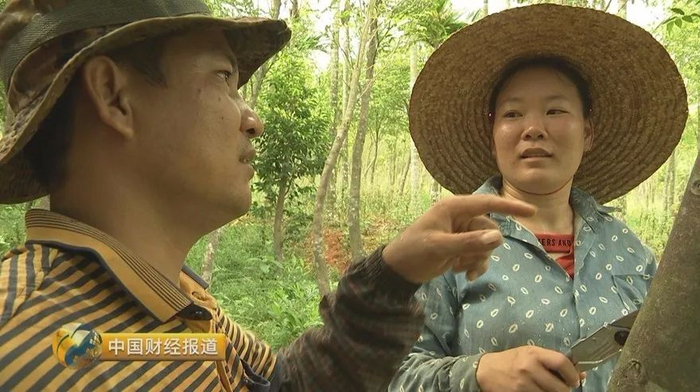 陈章一家原先种橡胶林,每天三更半夜起床来割胶。但割胶的收入并不高,于是,2012年改种白木香树,他就跟着丁宗涨他们学习种植沉香树。