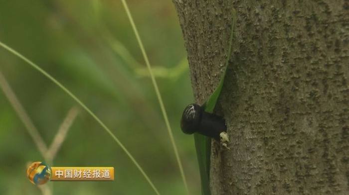 这几天,丁宗涨他们,正在给白木香树放置溯源钉,只有放置了溯源钉,才能实施人工结香技术。