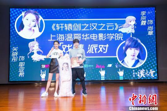 中新网上海9月23日电 (记者 徐银)古装电视剧《轩辕剑之汉之云》22日在上海温哥华电影学院举办“戏精派对”发布会。作为《轩辕剑之汉之云》的主演,关晓彤当天搭档李宗霖合体亮相,再续剧中耶亚希、尚章前缘,并与电影学院专业的学生们进行了亲切互动。