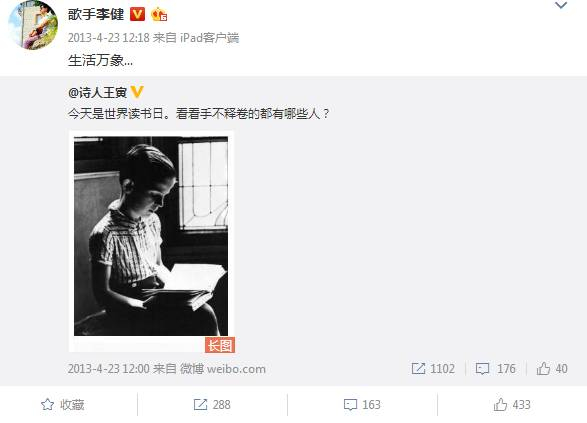 他是打心底里热爱读书,有满腹笔墨做后盾,才能成为“行走的段子手”。你看他的微博,除了音乐相关,就是谈读书最多了。