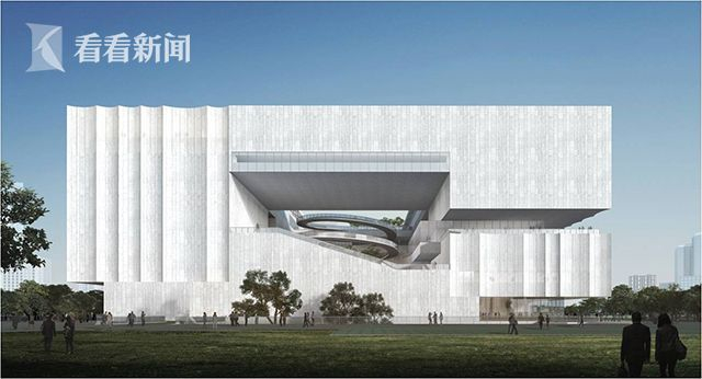 从外观上看,它的整体呈矩形体块,造型简洁挺拔,覆盖外立面的大理石表皮蜿蜒包裹,宛如大海波涛起伏,既暗合上海这座城市"海陆交汇"的地理位置,也象征着上海"勇立潮头"的排头兵精神。