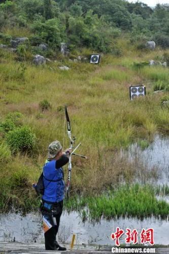 中新网昆明9月23日电 (赵曦)23日,“2017中国·昆明石林原野射箭公开赛”在昆明市石林县长湖风景区开赛。来自天津、山东、山西、香港等18支队伍120名国内野外射箭选手参赛。本次比赛是目前中国唯一的国家级原野射箭比赛,填补了中国原野射箭比赛的空白。