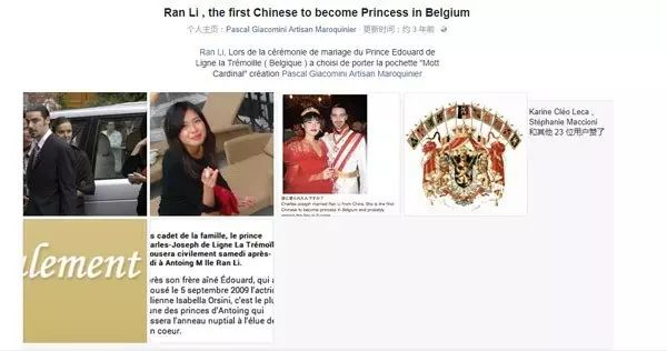 网上的消息称她是嫁入欧洲王室的第一个真正意义上的中国姑娘,是比利時第一位亚裔王妃。