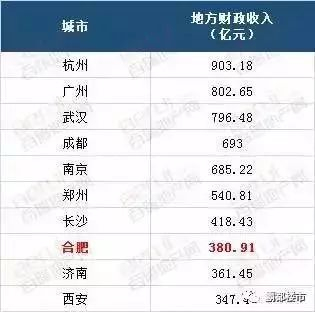 ▲ 2017年上半年合肥地方财政收入排名全国省会第8名。