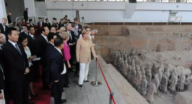 2010年7月17日,默克尔到了古都西安,参加中德企业家座谈会,参观大唐芙蓉园、秦始皇兵马俑博物馆。