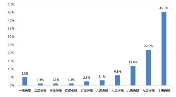 保险业于2014年颁布实施的新残标10级伤残条目中,旧标准(7级34项)所没有的8到10级伤残,占比近80%,新残标大幅提升了保险消费者的保障水平。