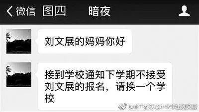 8月27号,我接到了班主任的微信通知,称本学期不接受刘文展的报名,请换一个学校。