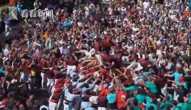 视频 | 惊险!巴塞罗那举行叠人塔活动 即将叠完时人塔突然坍塌众人纷纷从高处掉落