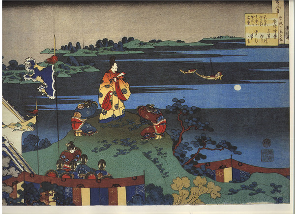 阿倍仲麻吕明州望月,选自葛饰北斋绘《百人一首》