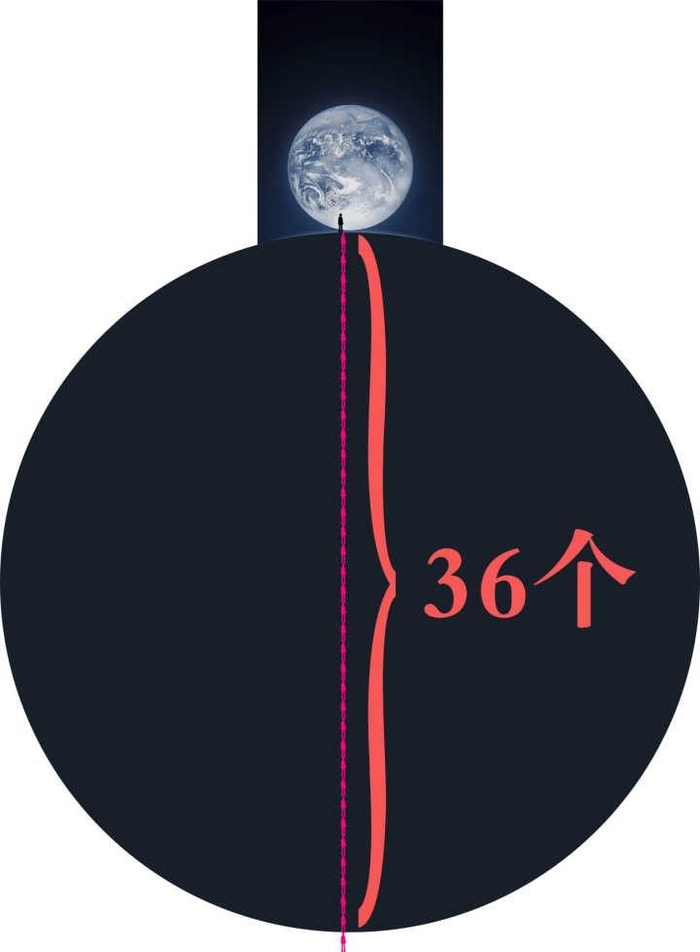 由图可知:小黑人站在星球上,测量可知星球的直径是小黑人的36倍。