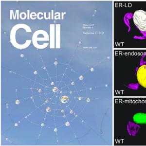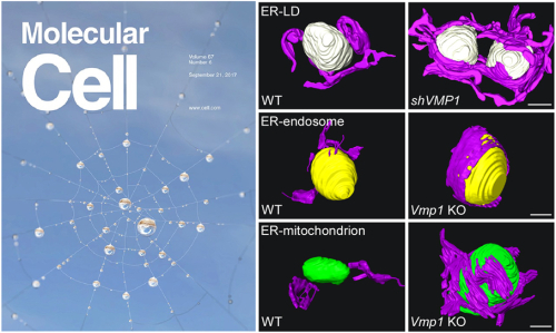 多细胞生物特有的自噬蛋白EPG-3/VMP1参与内质网(ER)调控自噬小体的形成。在EPG-3/VMP1敲除细胞中,内质网与细胞器的互作显著增加,如同雨后水珠粘挂在蜘蛛网上。