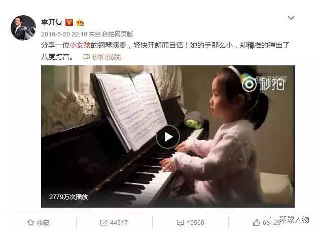 ——李开复转发了陈安可练琴的视频并盛赞: