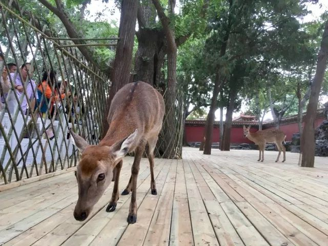 故宫御花园在清代亦曾养过鹿,鹿苑在今故宫御花园西南,还有一座高台名“观鹿台”,台下尚存有一道半圆形的鹿圈围栏地基遗址。鹿苑与御花园东南角的鹤圈形成鹤鹿同春的景观。