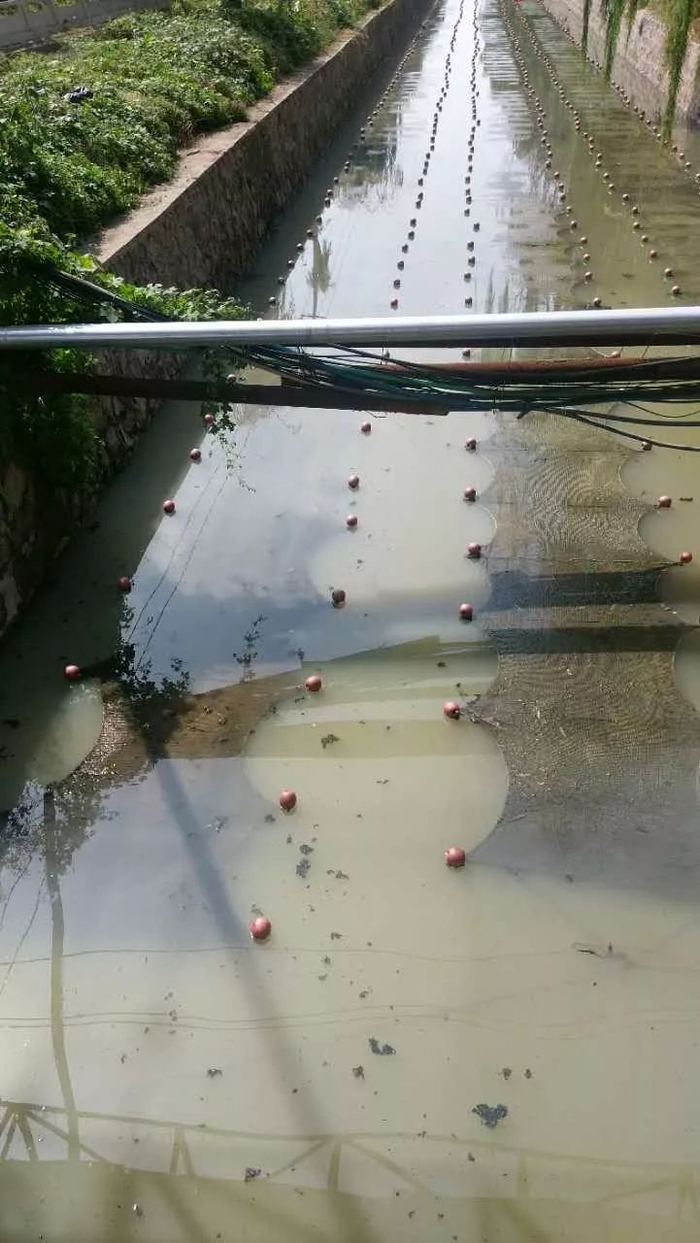 工程技术人员介绍说:“这张网在阳光的照射下,可增加水体溶解氧含量,逐渐摆脱黑臭水体的厌氧状态,分解水体中的有毒有机物,改变水体的黑臭状态,然后还能释放出氧气,使污水实现自净的效果,整个过程大约需要50天左右。这段600米长的试验段是8月中旬铺设完成的,我记得当时这里污水散发出来的臭味很呛人,经过这些天的处理,污水已由黑色变为绿色,臭味大大减弱,净化效果很明显。”