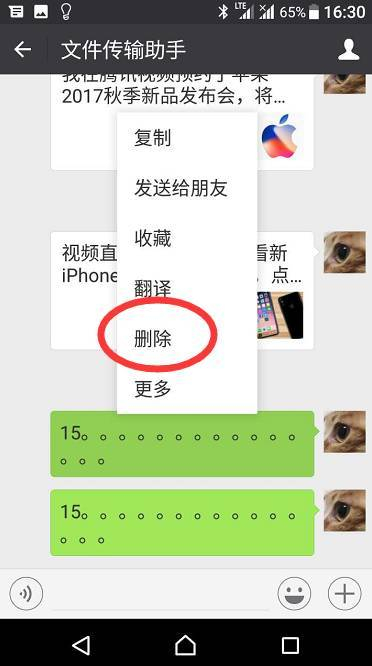 点按住那条要被删除的信息,在菜单里选择“删除”,问题就可以解决了。在删除之前千万不要再去聊天界面看聊天记录,否则会继续卡死!