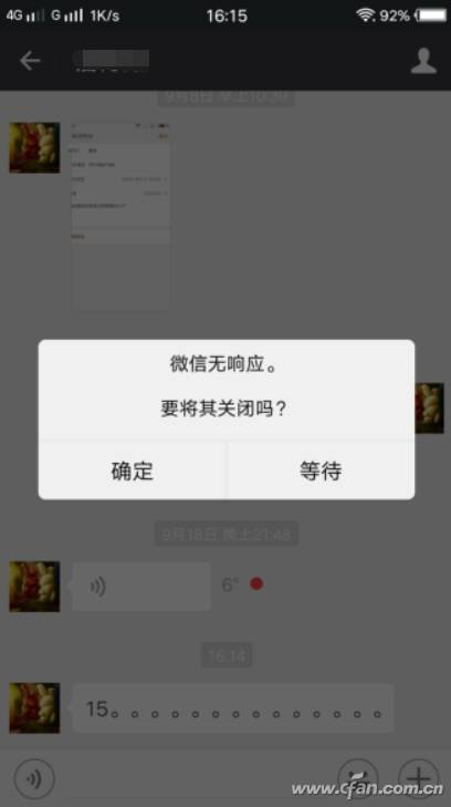 有多位网友反馈,如果发送“数字+15个中文句号”,再进入聊天界面,会出现卡死,微信提示崩溃,需要等待或关闭应用。