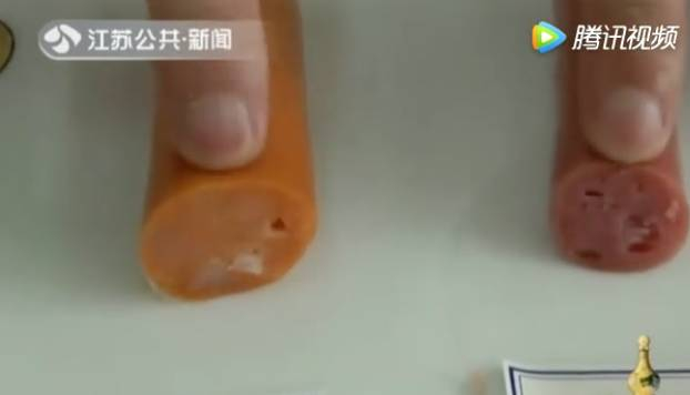 实验现场,烹饪专家将五件烤肠样品逐一切开,并对烤肠的质地进行辨别。专业人士介绍,烤肠的品质高低,可以从烤肠弹性、肠衣坚韧度、光泽度以及横切面气泡数等方面来判断。弹性越好,证明肉质越多,肠衣越坚韧代表品质越差,而气泡越多则说明淀粉含量越高。