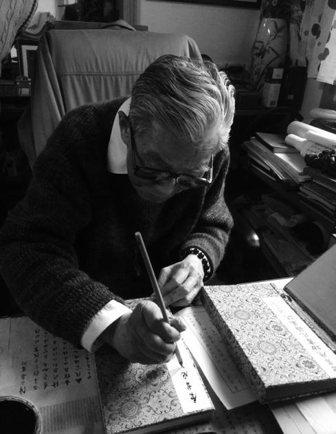第三点,我觉得他个人的这种生活的自律,我也是没有见过的,因为他一直跟我讲我平时是三点钟起床的,写字,因为我做口述的需要,我大概有两次是凌晨3点到他家。看他怎么(写),他等于说是要铺纸,墨呢是要自己磨,要磨一磨,有的时候也会用一些红星墨汁,但是他很多时候愿意自己磨。身体好的时候愿意自己磨,磨了之后写字写完之后他就好像一天的精神又活了,这种几十年如一日的自律和操守很难得。另外从他写字的,我从访问当中,对整个书法史,有很多的受益和讲解,那从早期的字的源头开始一直到清代的整个书法史的脉络,他是根本不用任何的字的东西,不用看文字,他就是几乎整个书法史的大家都在他的脑子里,然后,每个书法家的代表作品全部在他脑子里,而且他对每一个书家的评论我认为都是非常非常客观而且是有他自己的心得,所以我认为他在书法史的脉络梳理当中有自己独到的见解思考。