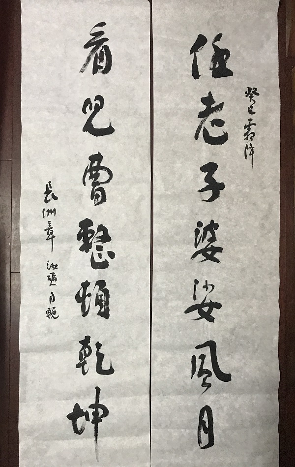 章汝奭先生生前所书的自挽联“任老子婆娑风月,看儿曹整顿乾坤”