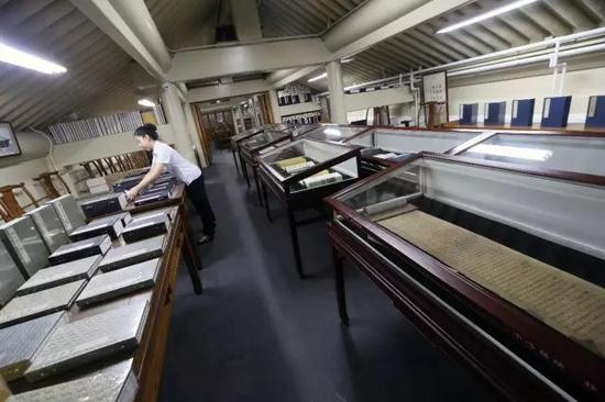 扶梯而上,二层主要陈列着古籍、旧书。除阅读区外,还设有活动区,古籍展览、文化讲堂、读书会、研讨会等文化活动在这里举行。