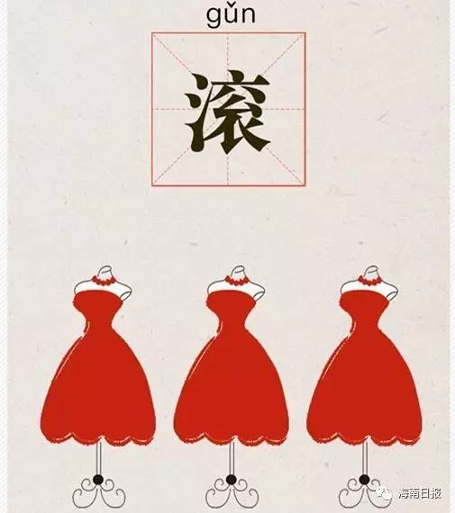 你没看错,夏天到了,满大街的女孩们穿得五彩缤纷、摇曳多姿的各种裙子,海南话读音就高度接近“滚”!