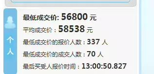 个人车牌竞价最低成交价为56800元