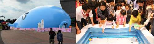 开渔节期间,游客可进入鲸鱼大型游乐设施内游玩,球池、气模等一系列不同的玩法带给你不一样的亲子体验,还有民间艺人手工制作的面人、糖画、剪纸售卖哦~