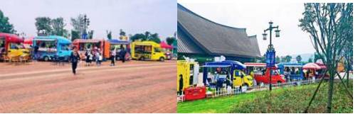 开渔节期间,在七彩云南·古滇名城 滇人竞渡广场设置小吃车集,向游客提供卤肉卷、烧豆腐、钵钵鸡、煎饼等美味小吃。