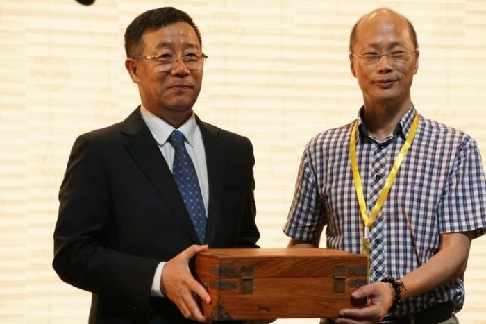 9月24日,秦玉峰从张志远传承工作室负责人、山东中医药大学教授刘桂荣手中,接受了张志远所献秘方。