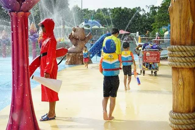 园区倒处是救生工作人员,站在乐园每个区域,让游客很有安全感。