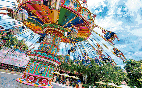 成人必须玩的项目:火箭过山车、欢乐小镇、垂直过山车,十环过山车,摩托过山车,超级大摆锤, U型滑板