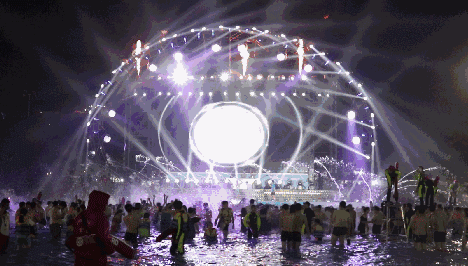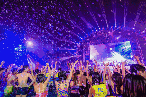 下午5点在造浪池有水上电音派对,还有水上空中飞人表演。
