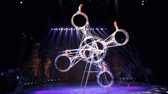 大马戏的场馆号称是全球最大马戏表演场,庞大的圆形场馆可容纳8000名观众。表演台和观众席中间隔了个环形水池(水池是个重要表演道具)。
