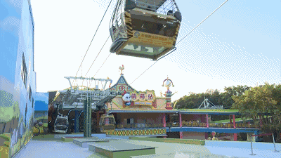 在北门乘坐小火车。(坐酒店免费班车的话去北门需要在南门下车后再换乘去往飞鸟乐园的巴士在北门下车)。动物世界内缆车分三段,以前可以分段乘坐也可以全部乘坐下来一圈,但现在要全部三个站不停坐完,全程将近40分钟,加上排队时间,还是挺磨时间的。不过好消息是现在做缆车全程免费、免费、免费。在上缆车时会发放透明手机套,挂脖子上,防止手机不慎掉下去。