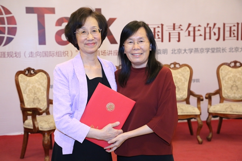 为感谢袁明教授对北京大学国际组织人才培养工作的关心和支持,北京大学学生就业指导服务中心特聘请袁明教授担任北京大学国际组织人才培养工作顾问,为有志于参与全球治理的优秀北大学子提供指导帮助。叶静漪向袁明教授颁发了“国际组织人才培养工作顾问”聘书。