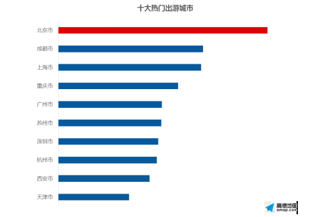 报告显示,十一黄金周期间,预计全国热门出游城市TOP 10将分别为北京、成都、上海、重庆、广州、苏州、深圳、杭州、西安和天津。