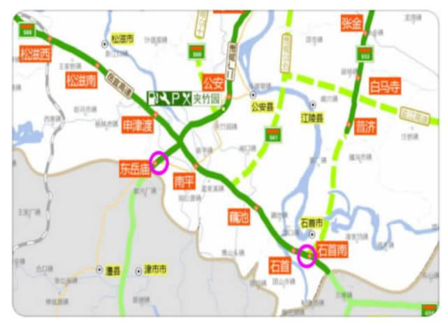 沪渝、沪蓉高速公路互为复线,武汉前往荆门、宜昌、恩施、黄冈方向,两条路线均可选择。