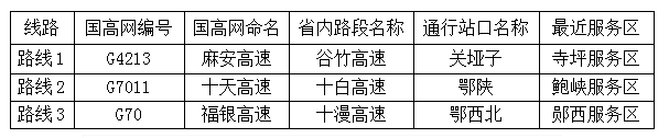 福银、麻竹高速公路在我省孝感、随州、襄阳、十堰境内基本平行,前往鄂西北和陕西方向,两条路线可灵活选择。