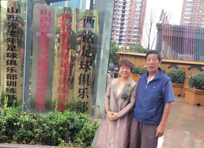 钟文琴与山西省足协中老年委员会主任樊利平。