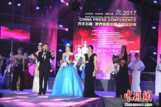 中新网宜宾9月27日电(王哲申勇)26日晚,“兴文石海·2017世界旅游小姐中国总决赛”在四川宜宾兴文县落下帷幕,来自全国各地的39名选手同台竞技,通过才艺展示、苗族服装、泳装和晚礼服秀等环节比拼,最终来自山西的荆文莲夺得2017世界旅游小姐中国区总冠军,龙唤雨、周琳佳分别获得亚军、季军。