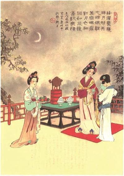 古有“祭日祭月不宜迟,仲春仲秋刚适时”之说。中秋节祭拜月亮是古已有之的传统,是天体信仰的岁时化和仪式化。旧时祭拜月亮,或祈月圆人圆,或祈多生多育,或求早步蟾宫,高攀仙桂。因月为太阴,是妇女的保护神,故拜月有“先女后男”之序,亦有“男不拜月,女不祭灶”的禁忌。