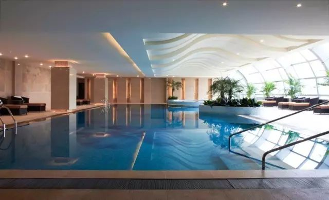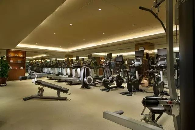带个人电视的跑步机、健身自行车、自由重量训练器材、还有暖水\u000b按摩池、桑拿房和自然采光的游泳池。