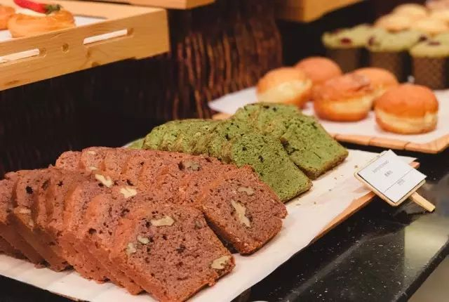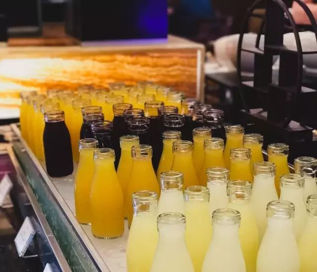 此外不仅各类西式面包畅吃,同时还配有鲜榨果汁、牛奶酸奶等畅饮。