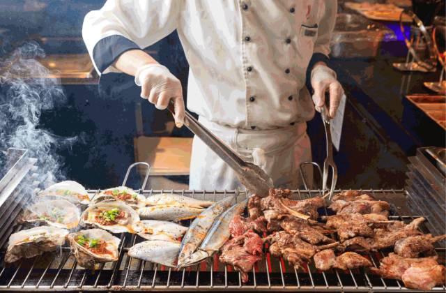 五星酒店大厨现烤现做最大程度地保留热度,所选用的食材也均为上乘。