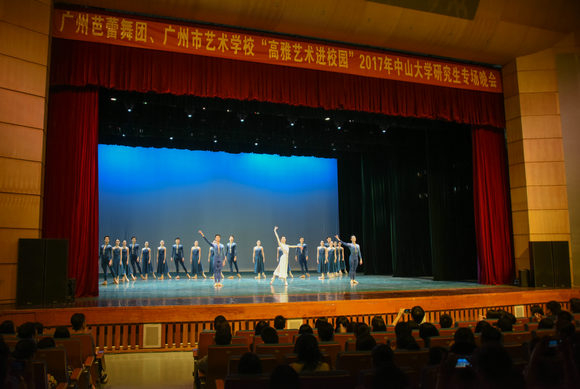 9月24日、25日晚,作为广州芭蕾舞团、广州市艺术学校“高雅艺术进校园”活动之一,2017年中山大学研究生专场中外芭蕾精品晚会在我校广州校区南校园梁銶琚堂落下帷幕。本次晚会由我校研究生院主办,校研究生会文娱部承办,我校研究生代表、研究生教育战线教师代表共2000余人观看了演出。演出节目精彩纷呈,受到我校师生的热烈欢迎。