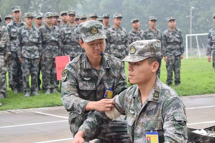 这是心理”治疗术“,下面解锁战场版,打仗是要流血牺牲的,学会战场救助对于每一名官兵来说都异常重要,开展战场自救互救科目的学习,让新兵受伤会包扎,情况会处置,有效提高战斗力。
