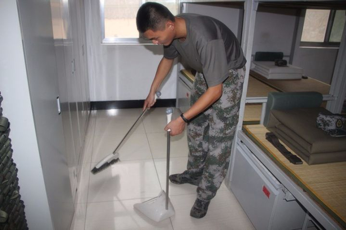 军营版:读到这里,也许你会说军营没有大野怪可打,这技能不科学。莫急,待我解说。虽无庞然大野怪,但是这里却有野草可割,有臭虫,苍蝇之类“小野怪“可打击清除,有地板可打扫,是不是有那么点异曲同工之妙。进门看内务,内务卫生是军人严谨作风的展现。