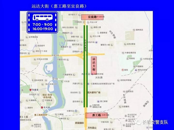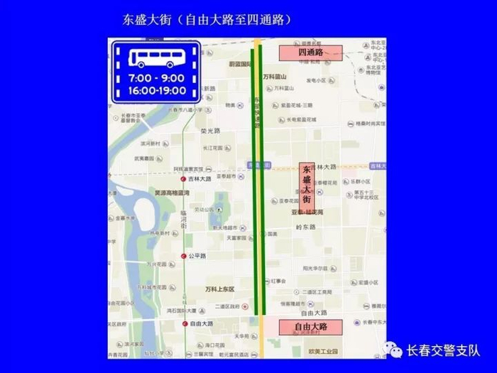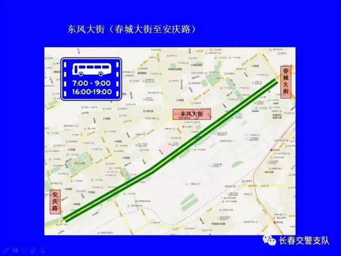 为科学有效利用道路资源,提高路网通行能力,对现有公交专用车道使用时间进一步明确和优化。除早、晚高峰(7时至9时、16时至19时)外,允许其它社会车辆在东风大街等7条街路的公交专用车道内通行。